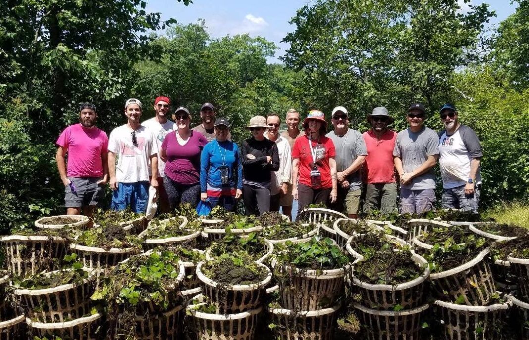 G4G volunteers helped the Charles River Watershed Association on Saturday by removing invasive water chestnuts. These aquatic weeds grow prolifically throughout the Newton and Waltham Lakes District. If allowed to reproduce freely, water chestnuts cause a myriad of issues for the ecosystems and waterways they inhabit. For more on Gay for Good Boston, and how you can volunteer with them, go to gayforgood.org/boston.