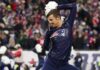 Patriots cheerleader Jeremy Greer scores for the team at Super Bowl